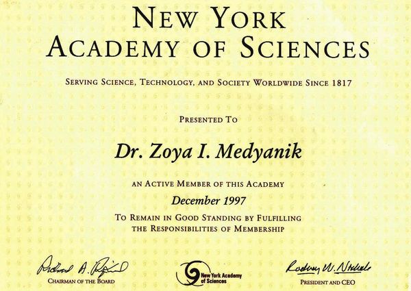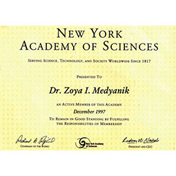Szakmai tevékenységének legnagyobb elismerése hogy 1997-ben a New York-i Tudományos Akadémia aktív tagjává fogadta.