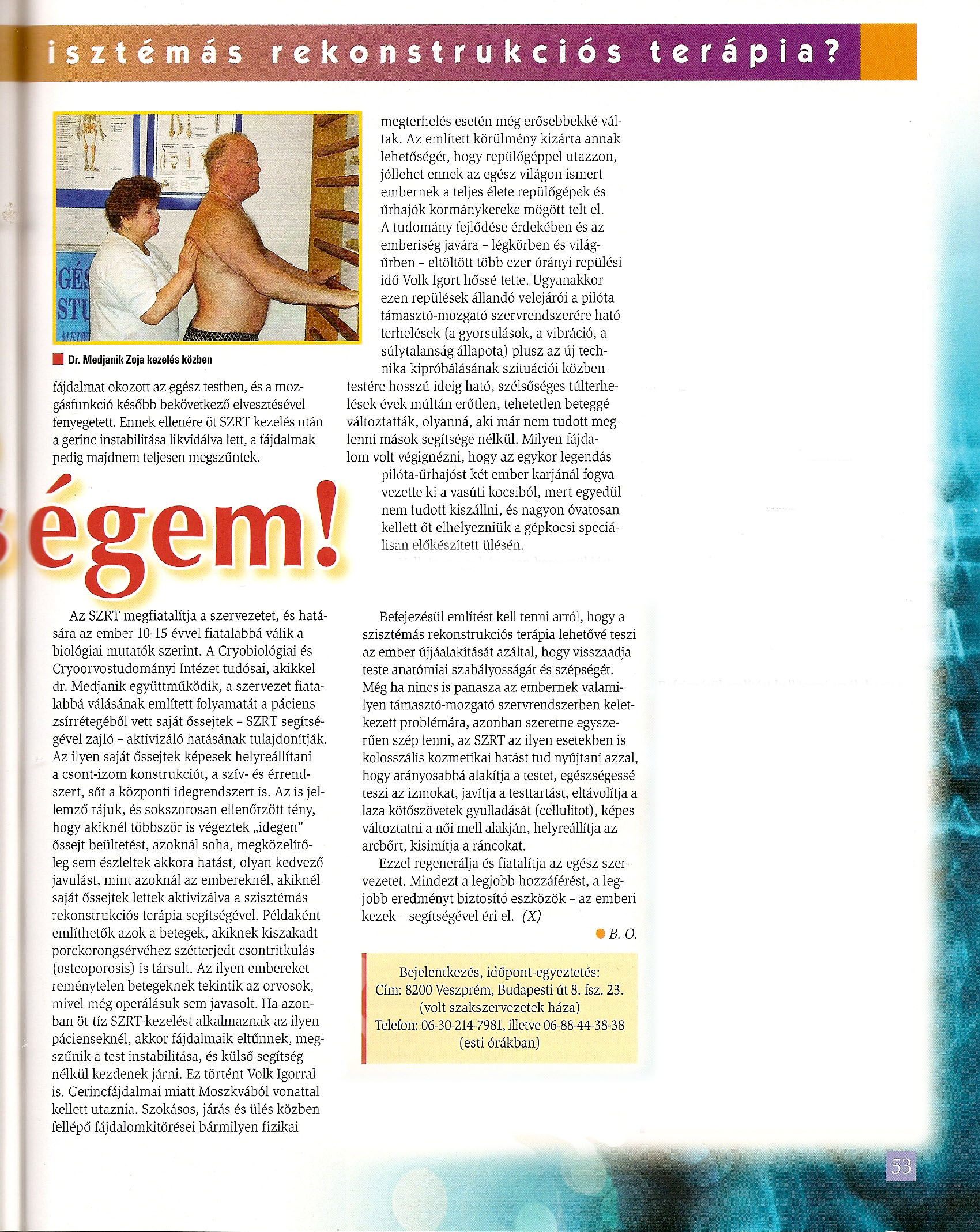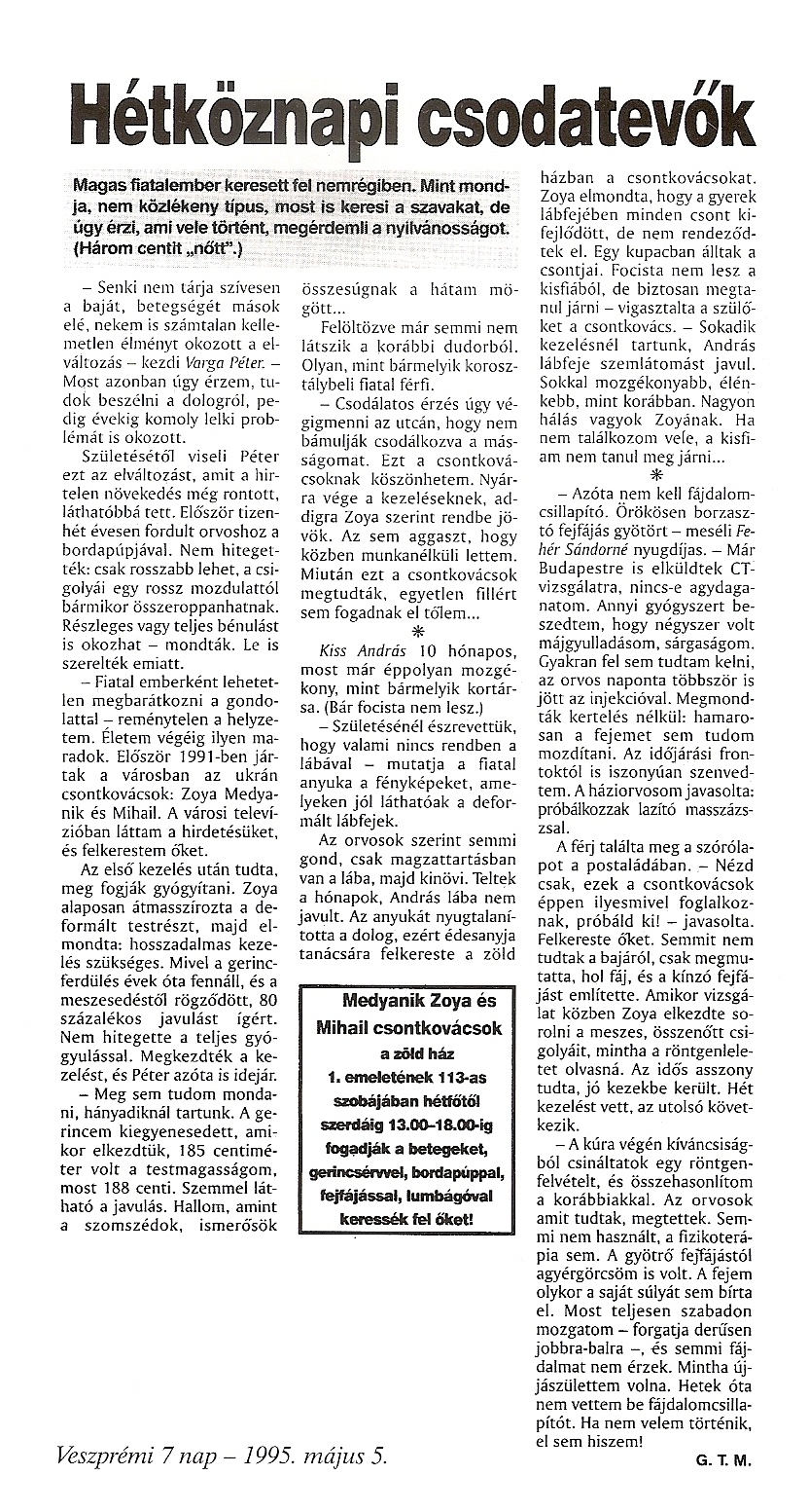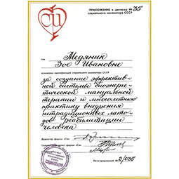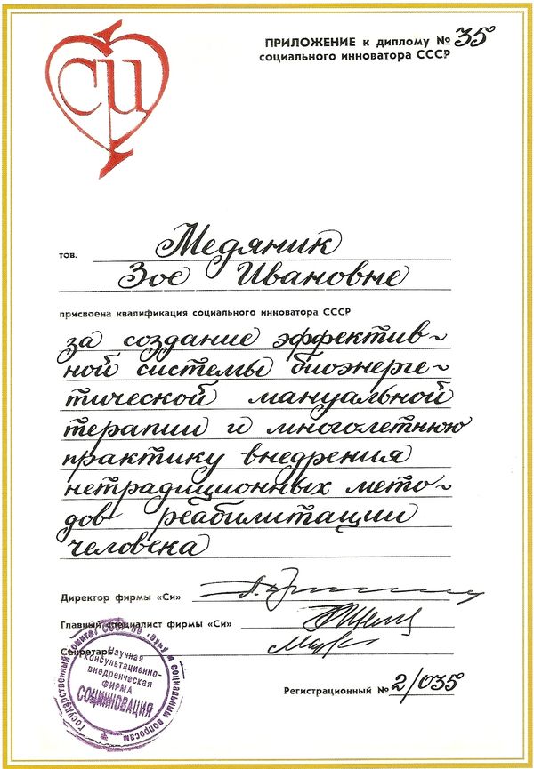 Dr. Medjanik Zoja 1940. augusztus 17-én született az ukrajnai Harkov városában. Már gyermekkorában érdeklődést mutatott a manuálterápia iránt, ugyanis nagyszülei is híres "csontkovácsok voltak".