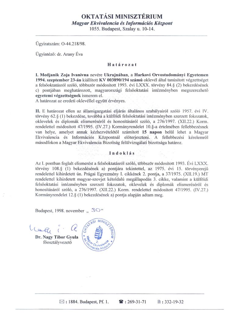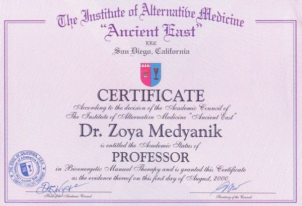 Egy évvel később a Bioenergetikus Manual Terápia Tanszéken professzori címet kapott.