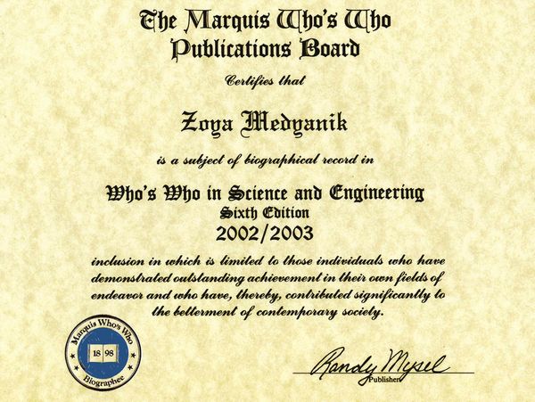 A következő években nemzetközi publikációkban hivatkoznak rá, mint a "Who's Who in Science and Engeneering" ill. a Who's Who in Medicine and Healthcare" lexikonokban.