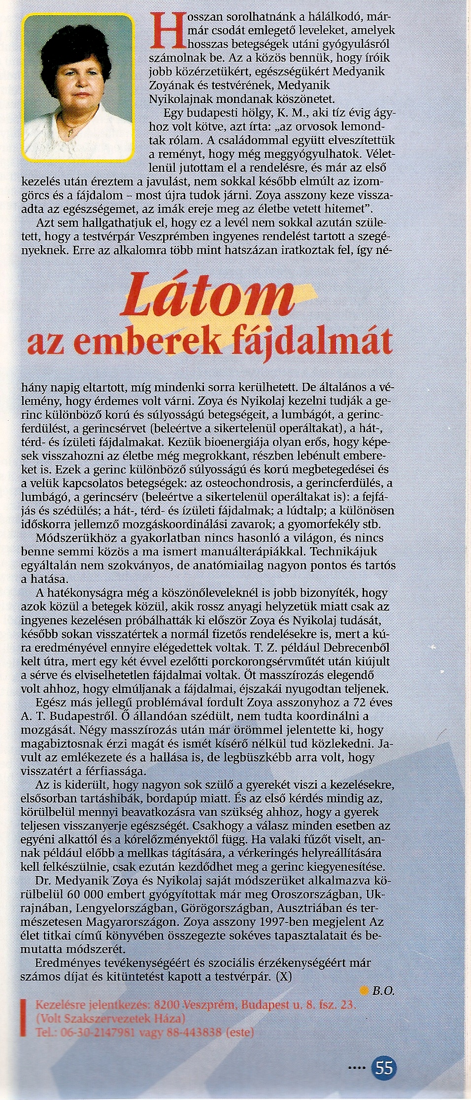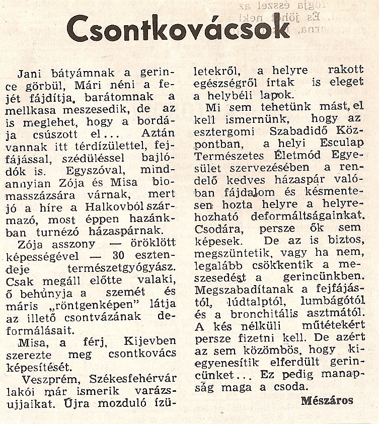 Több, mint negyvenéves gyógyító munkája, kimeríthetetlen tudása és szerénysége példaértékű lehet mai harácsoló világunkban a felnövő természetgyógyász-szakmát választók számára.